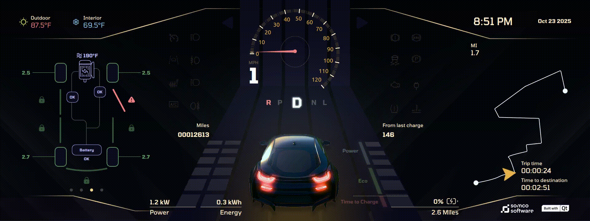 We created the same GUI demo using Qt on Linux (Yocto) and Android + Kotlin - a digital dashboard for an electric vehicle. It’s animation-rich, visually detailed, and runs on NXP i.MX8M Plus hardware to reflect real embedded conditions.